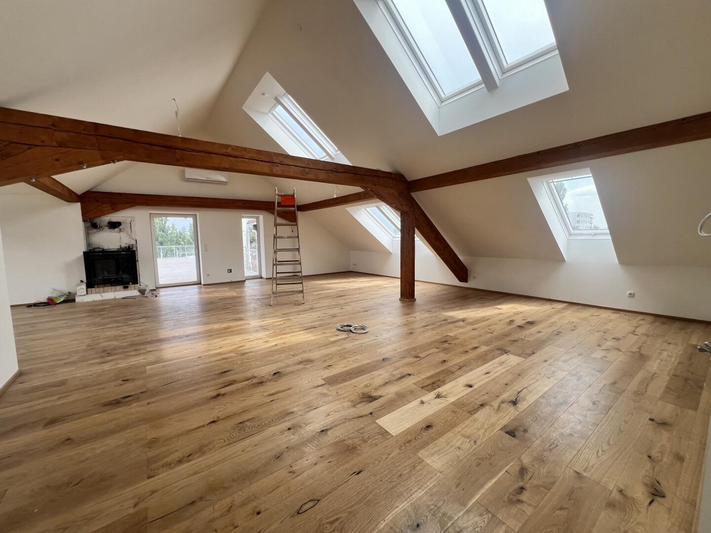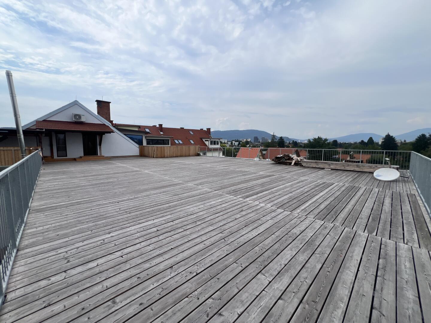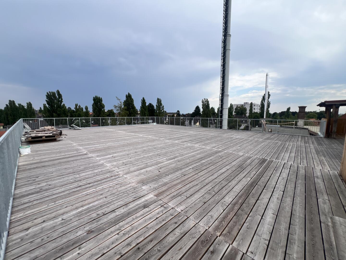 Absolutes Highlight ist hierbei ganz klar: Die Dachterrasse mit 270m2, direkt zugänglich über das große Wohn-Ess-Zimmer mit über 81m2.