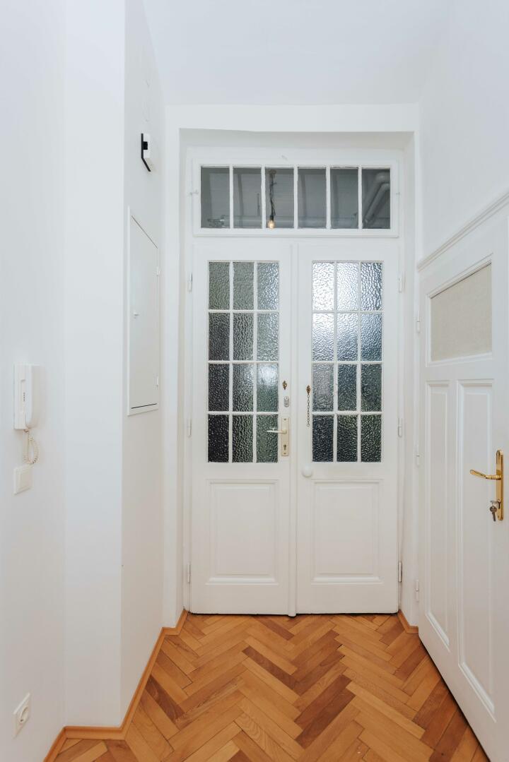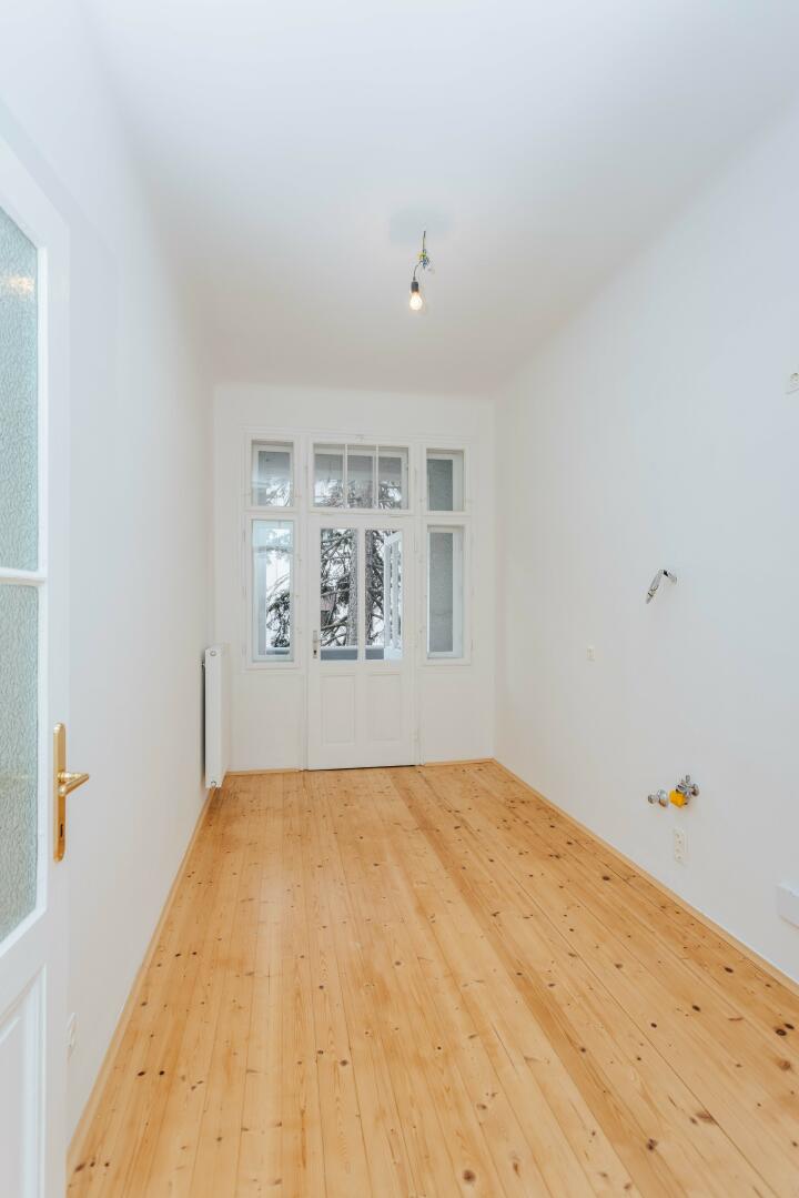 Wie zB: Fischgrät-Parkettböden, Kassettentüren, Wienerstockfenster, in der Küche Dielenboden. All diese Details und natürlich eine beeindruckende Raumhöhe von 3m30 unterstreichen den geschichtlichen Charakter dieser Wohnung gekonnt. Sie müssen nur mehr einziehen und mit eigenen Möbeln ein tolles Wohnambiente schaffen.