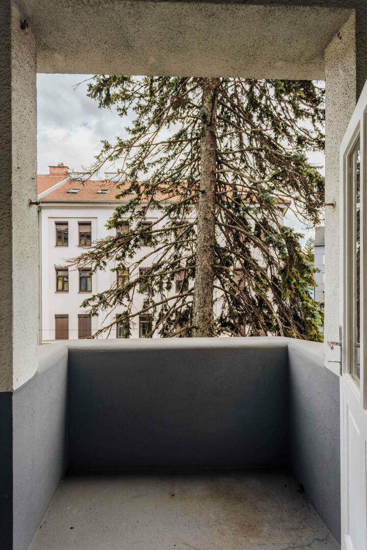 Vorraum, 2 Zimmer, Küche mit Zugang zum Balkon, Badezimmer mit Dusche, WC getrennt.
