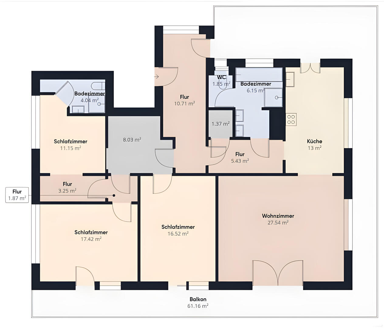 - Anzahl der Zimmer: 4 Zimmer mit separater Küche & 2 Bädern