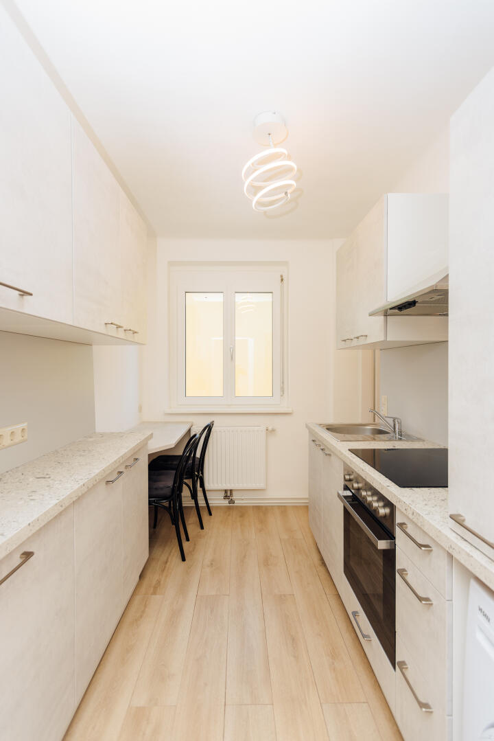 Neue Böden, nagelneue Küche! Neue Eingangstüre (Brand-Sicherheitstür) Prüfprotokoll für die Elektrik liegt auf.
