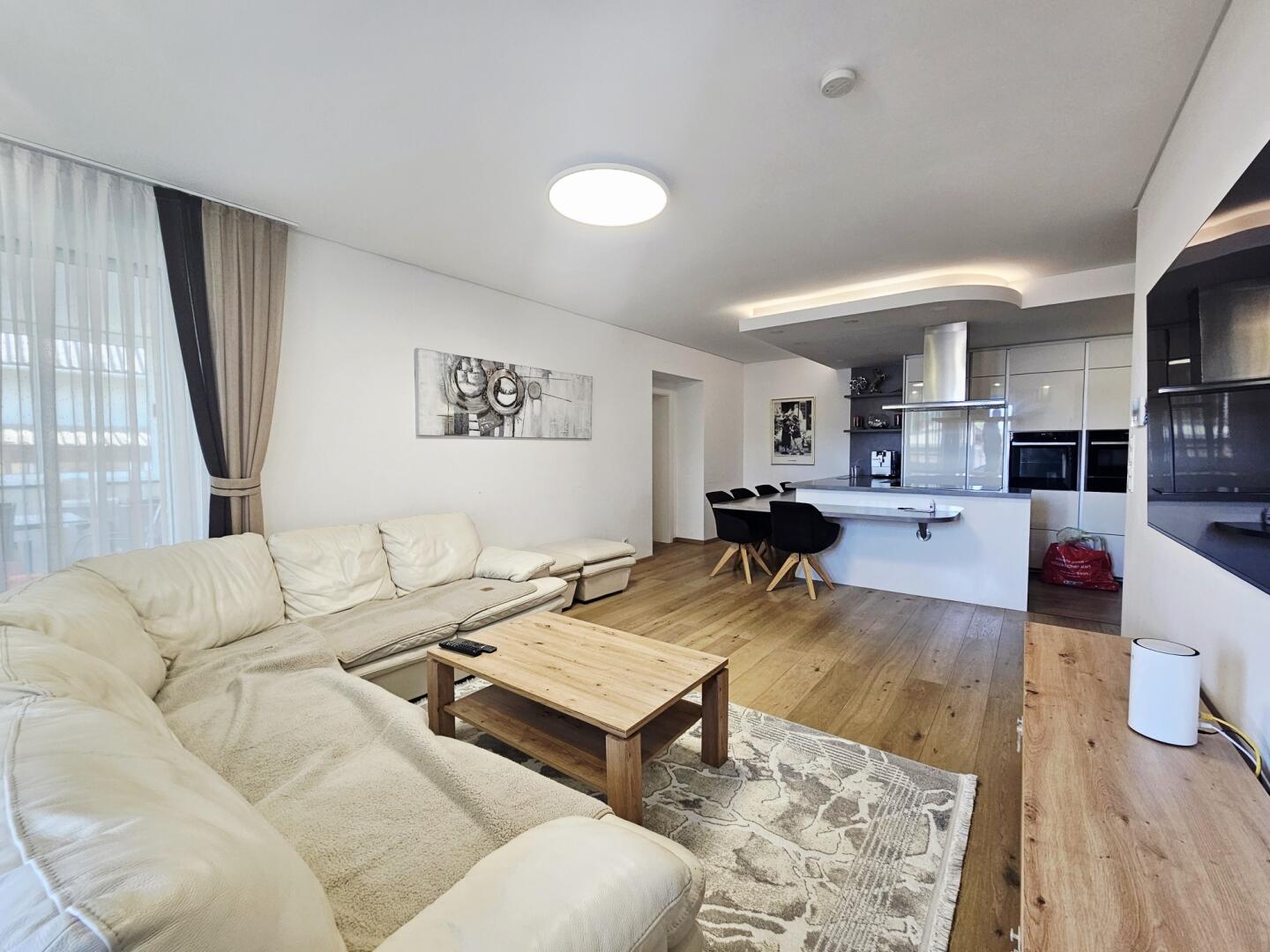 großzügige, offener Wohn-/Essbereich mit hochwertiger Dan-Küche und direktem Zugang zur Terrasse