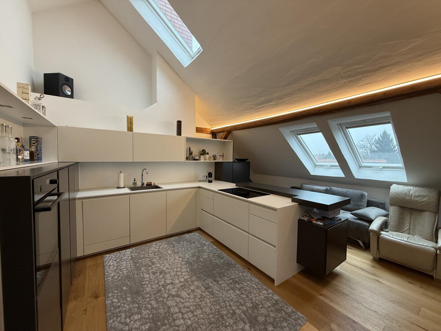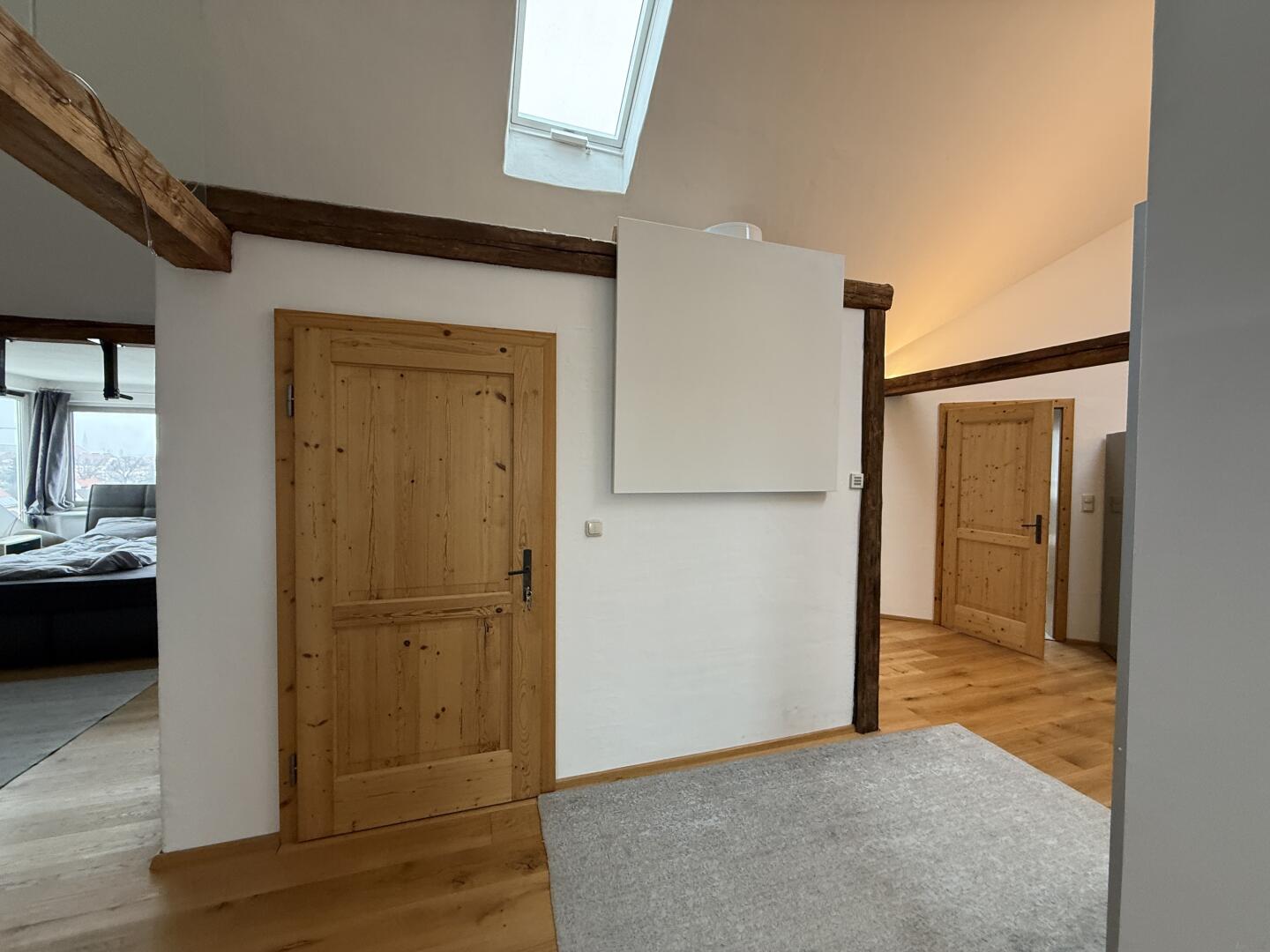 Mit Blick über ganz Graz bis hin zum Uhrturm steht hier eine hochwertige, neu sanierte Dachgeschoss-Wohnung zum Verkauf. Die hellen Räume sowie die sichtbaren Holzträger vermitteln ein wohliges Raumgefühl nicht zuletzt auch aufgrund der offenen Raumaufteilung