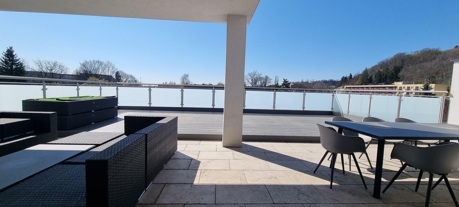 Möblierte Dachterrassenwohnung mit einer Wohnfläche von 130 m2 zzgl. 80 m2 südseitig ausgerichtete Dachterrasse.