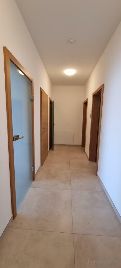 An der Küche vorbei gelangt man über einen Zwischenraum in 3 Zimmer - derzeit Schlafzimmer (mit Boxspringbett, Kommode und Fernseher), Schrankraum und Arbeitszimmer- sowie in den Wirtschaftsraum mit WM und Trockner und in das Badezimmer, welches mit Dusche und Badewanne ausgestattet ist.