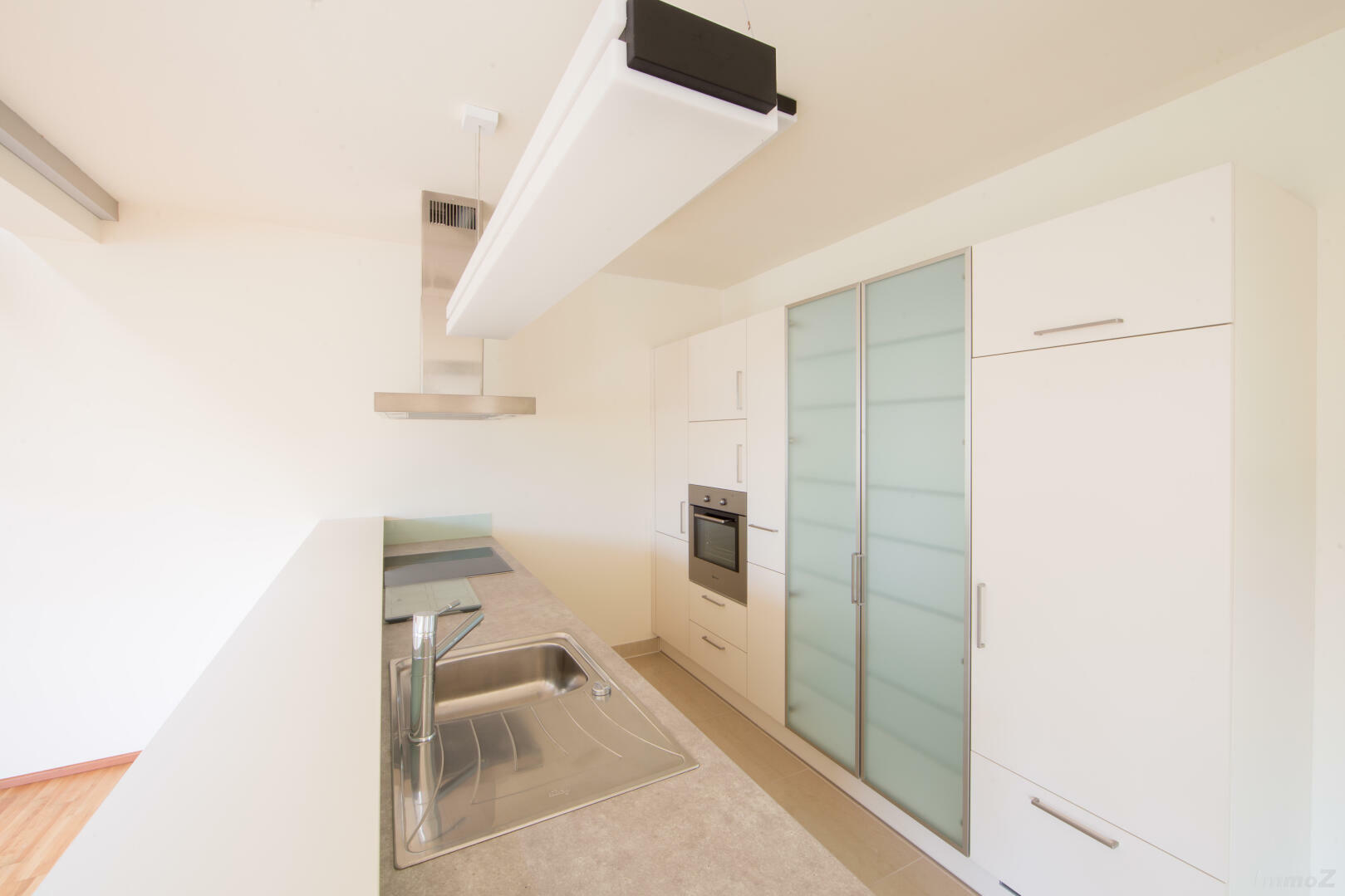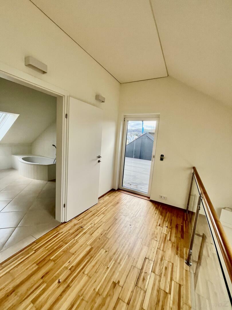 Maisonette in hochwertiger Ausstattung ausgeführt. Vom geräumigen Vorraum gelangt man in ein Zimmer mit Ausgang auf den Balkon, ins WC und in die top ausgestattete Küche, welche durch die offene Gestaltung Wohnen + Essen ideal verbindet. Vom Wohnzimmer gelangt man mittels Treppe in die Galerie im oberen Geschoss. Von der Galerie ist die große uneinsichtige Terrasse erschlossen. Ein geräumiges Badezimmer mit Wanne, Dusche und Fenster vermittelt einem das Gefühl einer Wellness-Oase. Das Schlafzimmer befindet sich gleich neben dem Badezimmer. Durch Insta-Bus-Steuerung ist man auch technisch am letzten Stand. Ein Parkplatz ist im Mietzins enthalten. Die Klimaanlage rundet das Angebot ab. Ein Büroaufwand in der Höhe von 1X EUR 160,- ist an die Hausverwaltung zu bezahlen.